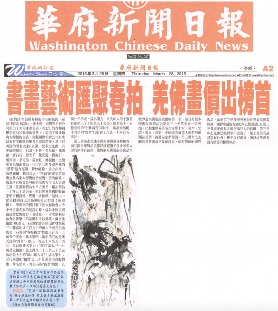 ▲ 2015年3月22日 华府新闻日报 书画艺术汇聚春拍 羌佛画价出榜首