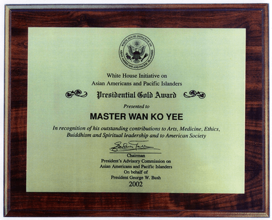 ▲ 2002年义云高大师获颁美国总统金牌奖章