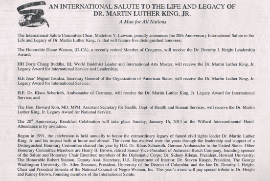 ▲ 2011年H.H.第三世多杰羌佛获得马丁路德金“国际服务及领袖奖”